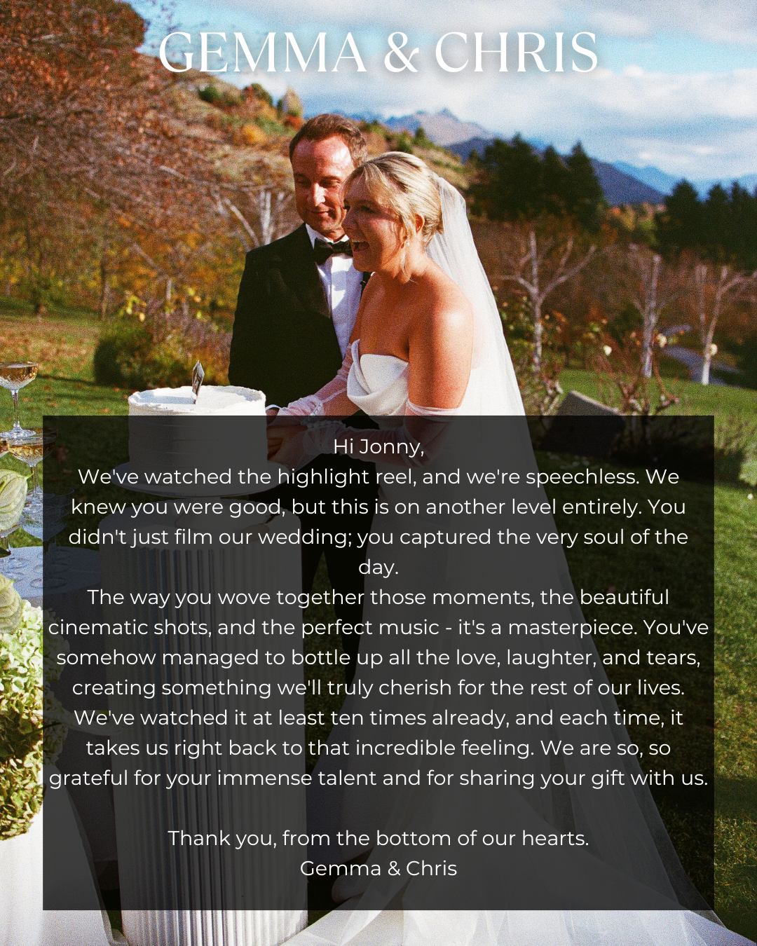 As you come toward this life-changing day, I understand better than anyone that finding the perfect match to document your wedding is of the upmost importance. This doesn’t just mean having a photographic and film team on hand who are technically gifted—it means trusting that team with making you feel comfortable in the moment, and being able to communicate your expectations, as well as your tastes with us. While I believe the films and photographs on this site speak for themselves, please take a moment to look over some of the testimonies below, which will assure you that myself and my team are both highly professional, personable, and intuitive as to your needs before, during, and after your big day. I look forward to hearing from you and making the vision of your wedding happen.